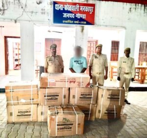 मनकापुर पुलिस द्वारा भारी मात्रा में विभिन्न प्रकार के पटाखों के साथ 01 अभियुक्त को किया गिरफ्तार