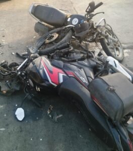 इटियाथोक,गोंडा। थाना क्षेत्र अंतर्गत गोंडा-बलरामपुर हाईवे पर गुरुवार की सुबह तारी गांव के निकट दो तेज रफ्तार बाइकों में आमने सामने की भिड़ंत हो गई। जिसके चलते दोनों बाइक के सवार युवक गंभीर रूप से घायल हो गए।दोनों बाइक पूरी तरह से क्षतिग्रस्त हो गई। हादसे में घायल दोनों युवकों को एंबुलेंस की मदद से गोंडा जिला अस्पताल भेजा गया है।इटियाथोक थाना क्षेत्र के परसिया गूदर गांव निवासी कौशल कुमार पांडे (28) अपनी बाइक से गुरुवार सुबह करीब छह बजे गोंडा की तरफ जा रहे थे।इसी दौरान पुलिस लाइन जनपद बलरामपुर में तैनात सिपाही मनोज कुमार गुप्ता (35) अपनी बाइक से बलरामपुर जा रहे थे।बताया जाता है,तभी हाईवे पर शिवम गैस एजेंसी के पास ही दोनों बाइकों में आमने सामने की भिड़ंत हो गई। जिसके चलते दोनों बाइक सवार युवक गंभीर रूप से घायल हो गए।घायलों को उपचार के लिए डायल एंबुलेंस से गोंडा जिला अस्पताल भेजा गया है। फिलहाल,पुलिस ने दोनों बाइकों को अपने कब्जे में ले लिया है।प्रभारी निरीक्षक कमलाकांत त्रिपाठी ने बताया कि अभी कोई तहरीर नहीं मिली है।(रिपोर्ट नागेश्वर सिंह )
